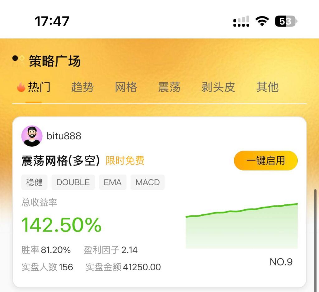 币途APP的策略跟踪,让你无需进行复杂的参数设置即可简单上手赚钱:
